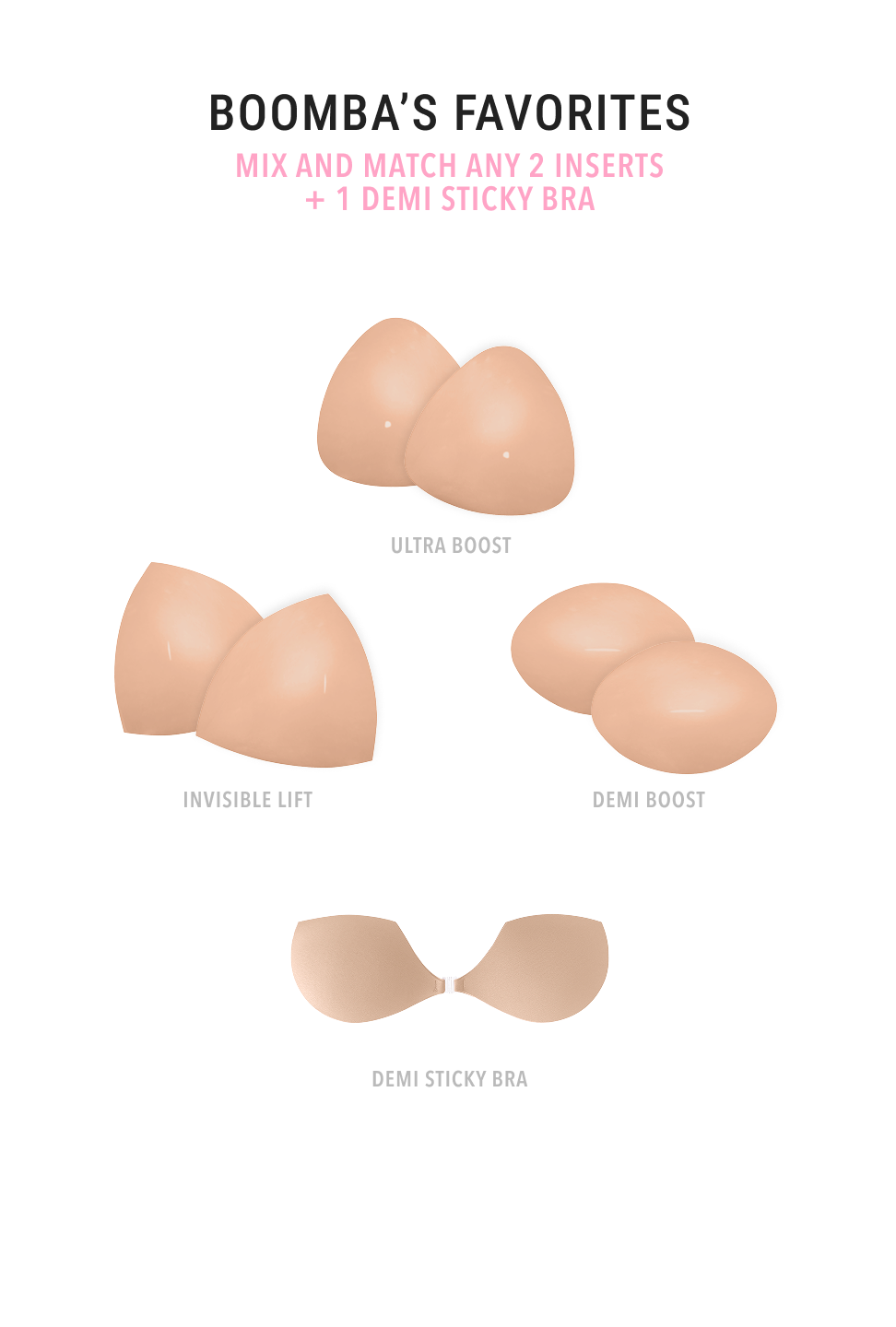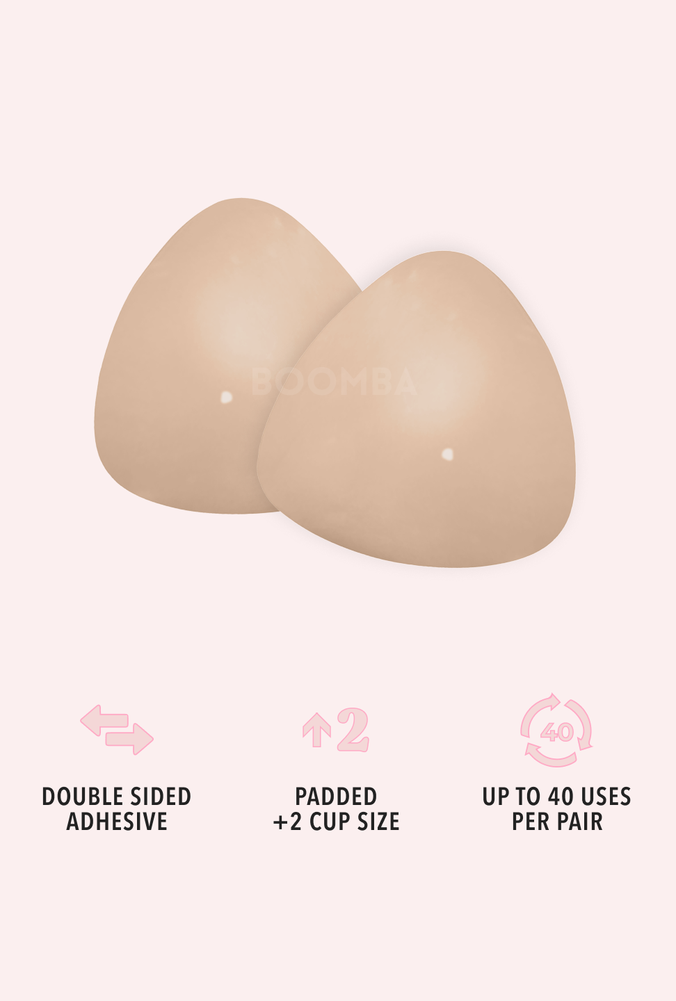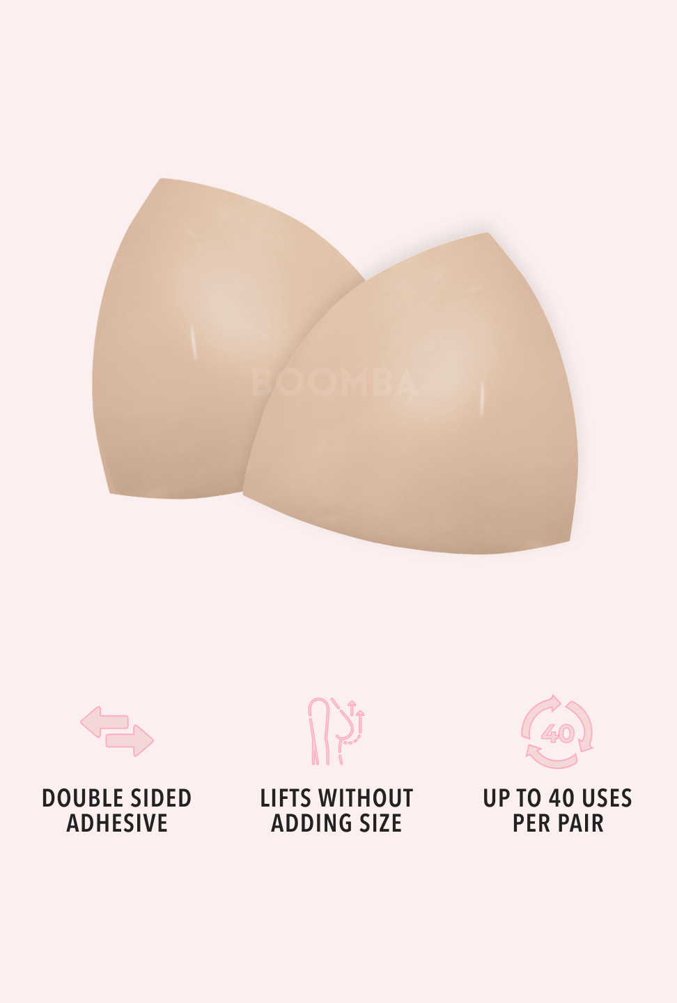 BOOMBA inserts are designed to lift and boost 2 cup sizes in seconds without surgery or a bra. Get the cleavage of your dreams with BOOMBA.