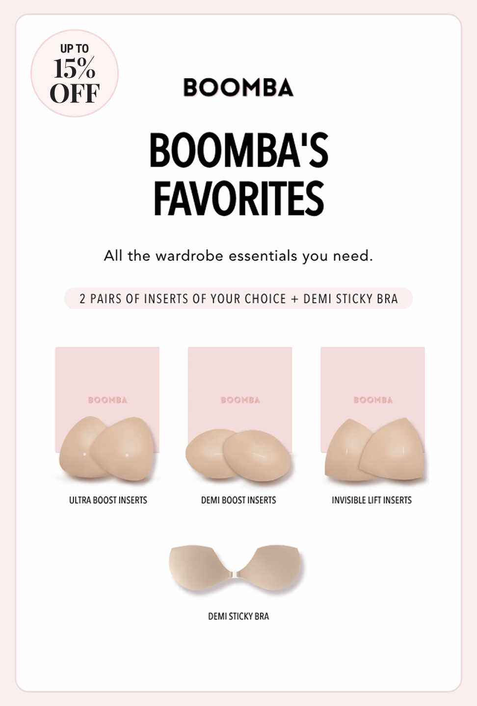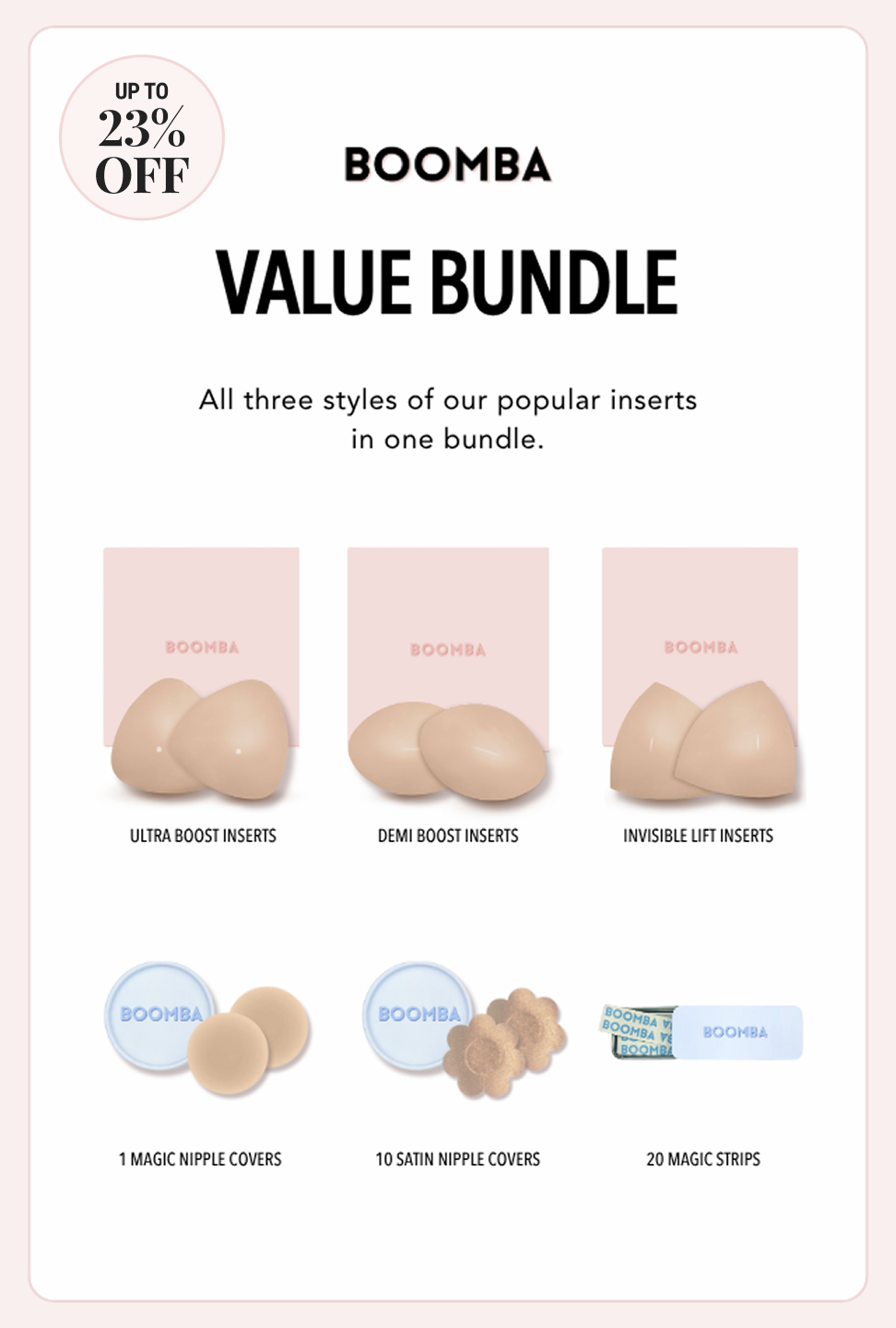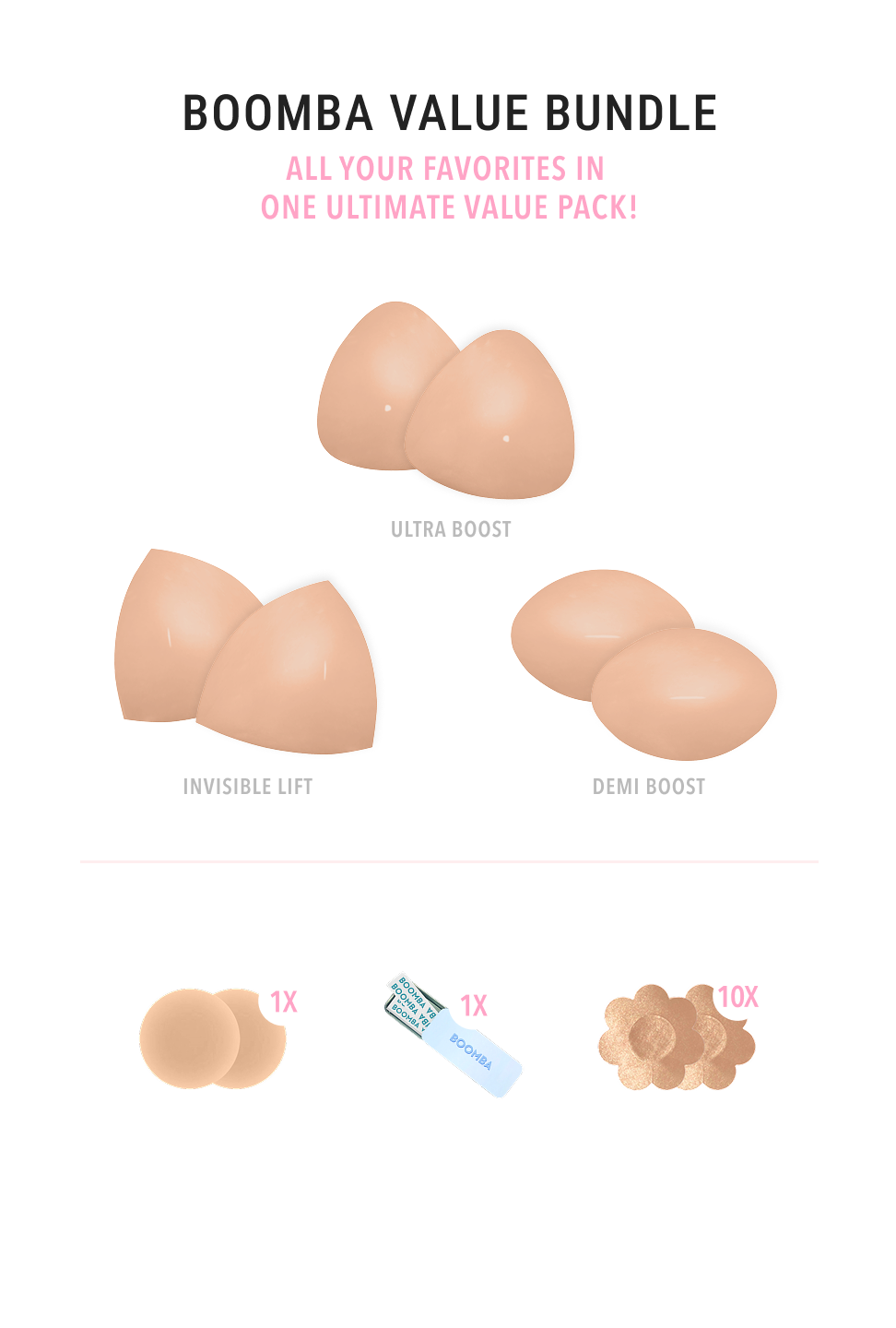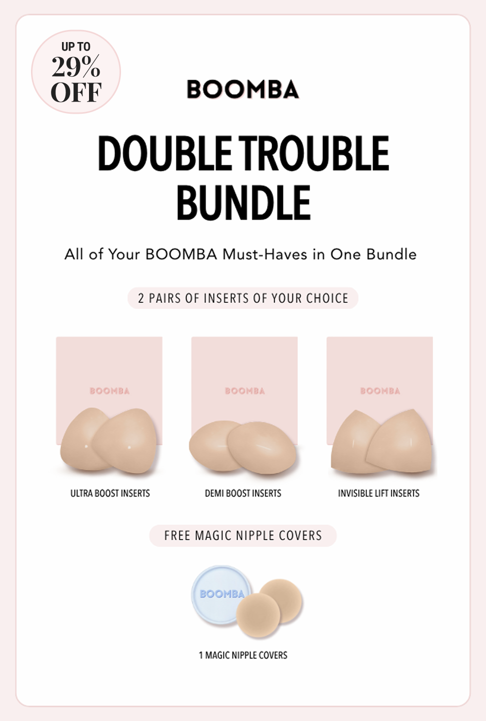 BOOMBA inserts are designed to lift and boost 2 cup sizes in seconds without surgery or a bra. Get the cleavage of your dreams with BOOMBA.