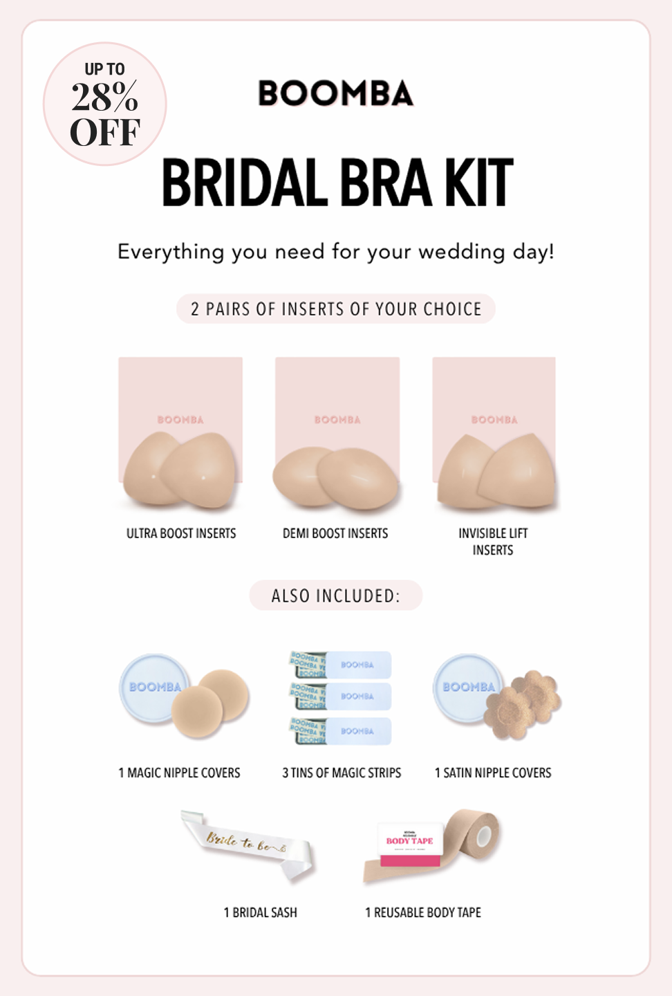 BOOMBA inserts removes the limitations of straps and buckles. Wear plunging necklines and bikinis with confidence.