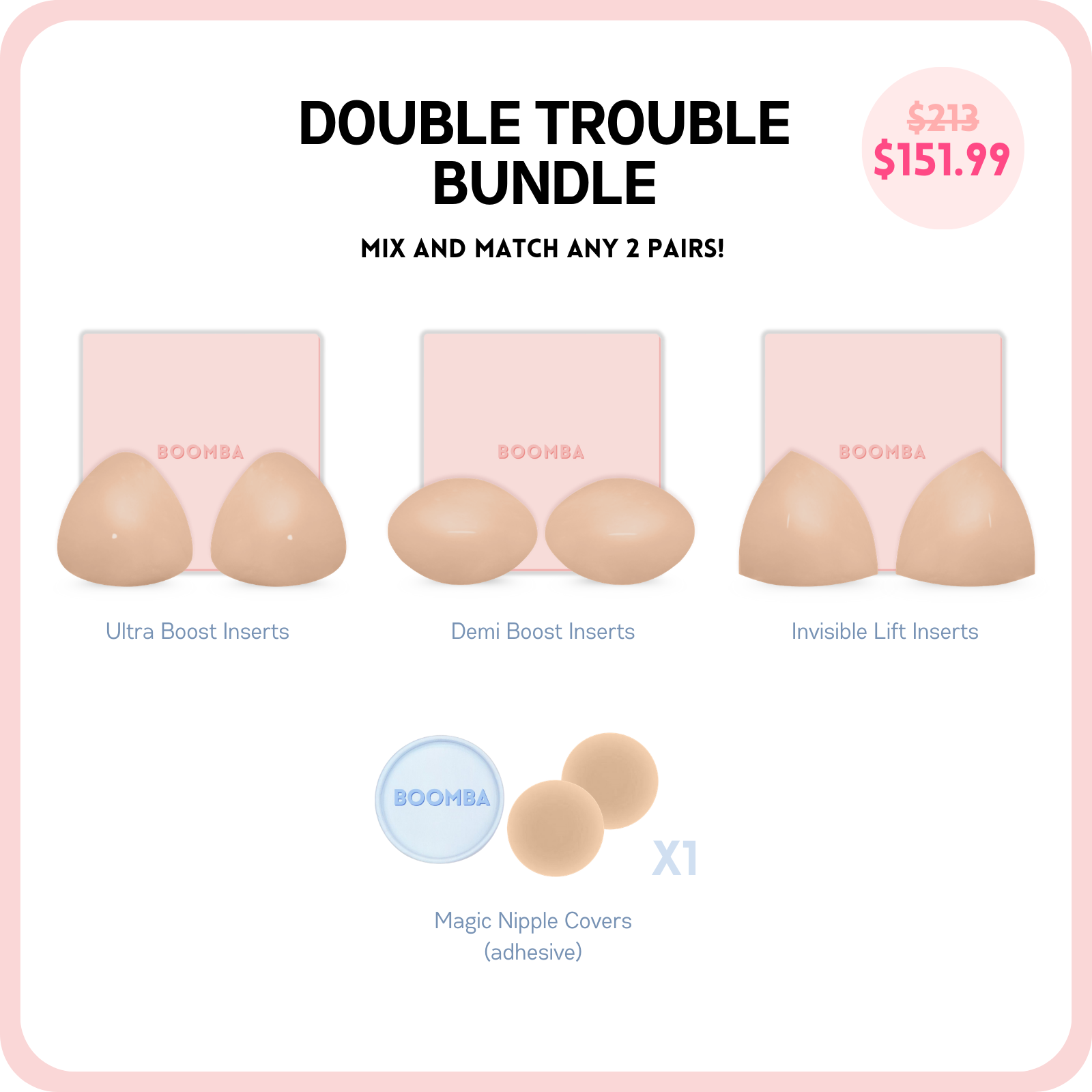 BOOMBA Inserts are uniquely padded inserts that instantly lift and add up to TWO cup sizes in seconds. They give you that gorgeous cleavage in a snap!