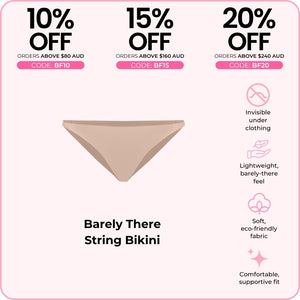 Meet the BOOMBA Barely There String Bikini—where comfort and elegance team up! With its minimalist string design, this bikini feels so light and discreet, it’s practically a second skin. Made from ultra-soft, breathable fabric, it keeps you comfy all day while staying invisible under any outfit. It’s like a hug for your hips—without the awkwardness.