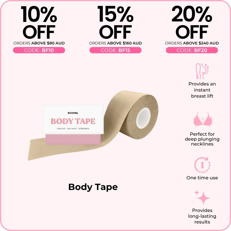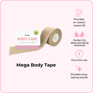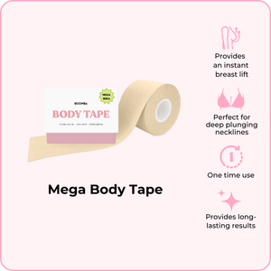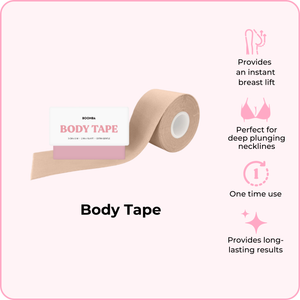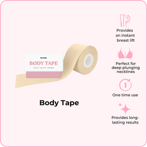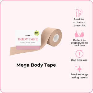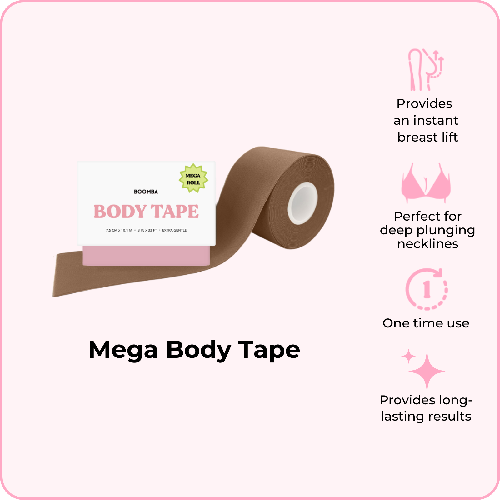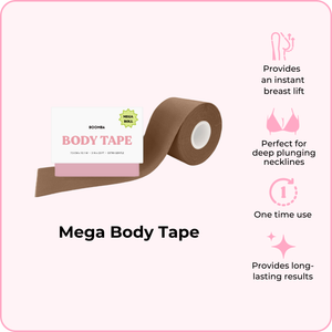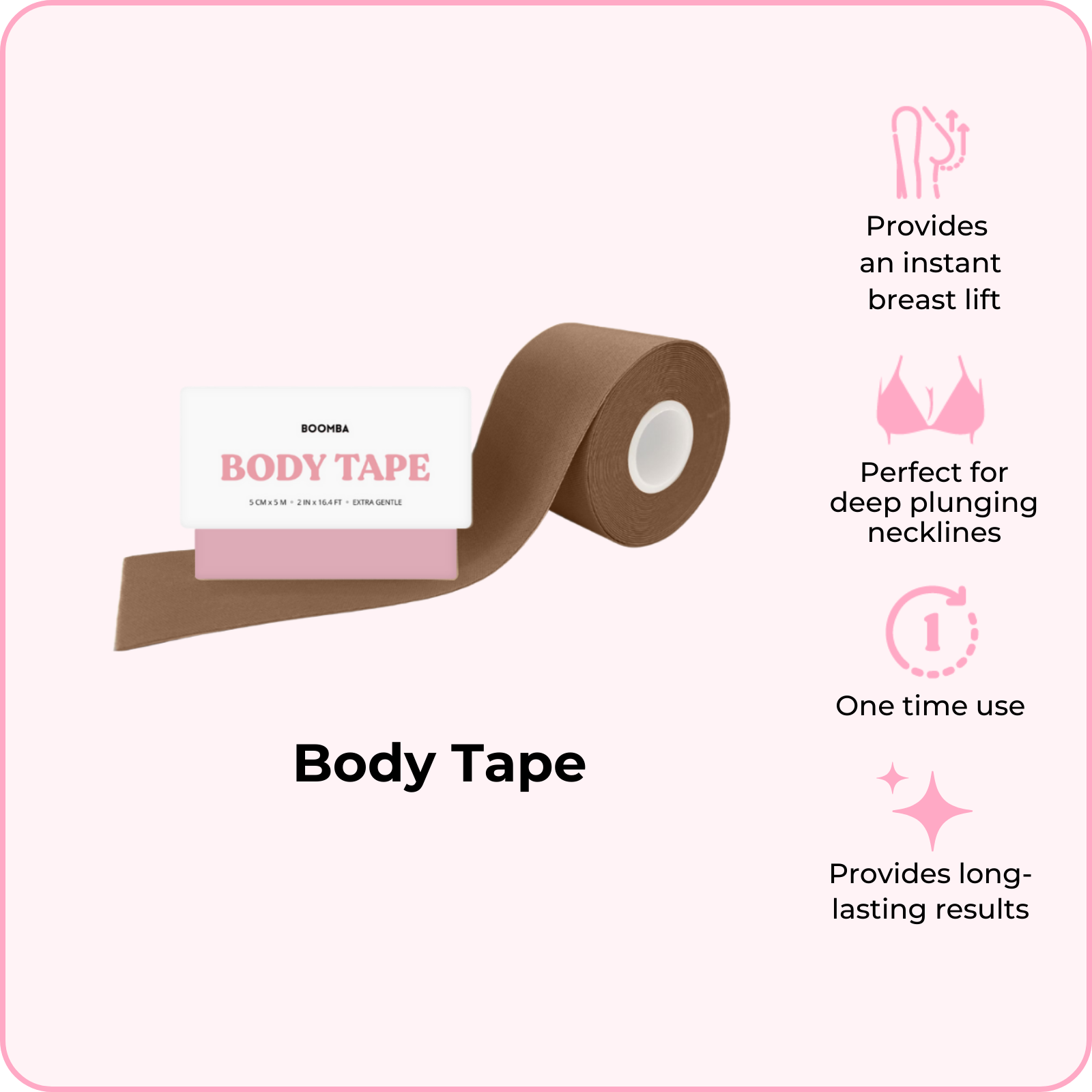 BOOMBA's Body Tape can be worn in various ways. Designed to contour with your shapes, our body tape is gentle yet strong, providing long-lasting results for up to 12 hours.