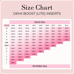 For sizes 12I and up, our Demi Boost Inserts (double push-up) are available in sizes up to 12M and our Invisible Lift Inserts (lightly padded) are available in sizes up to 12S.