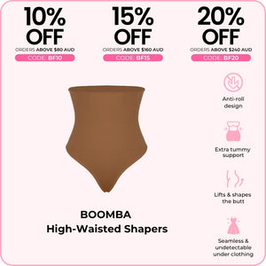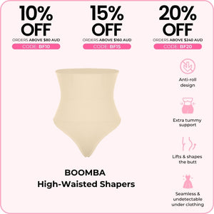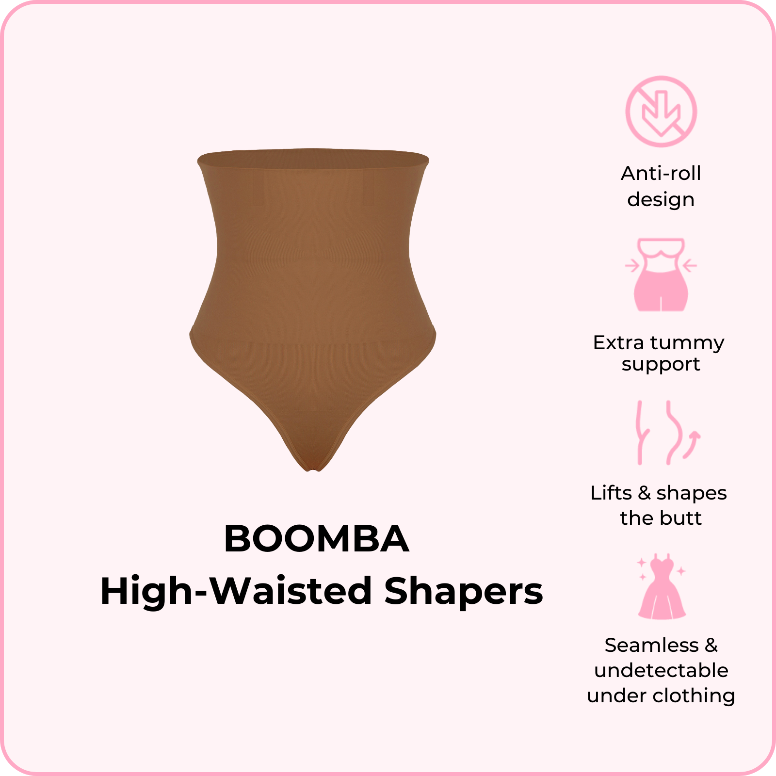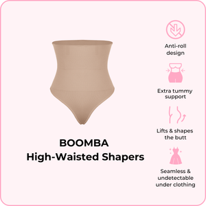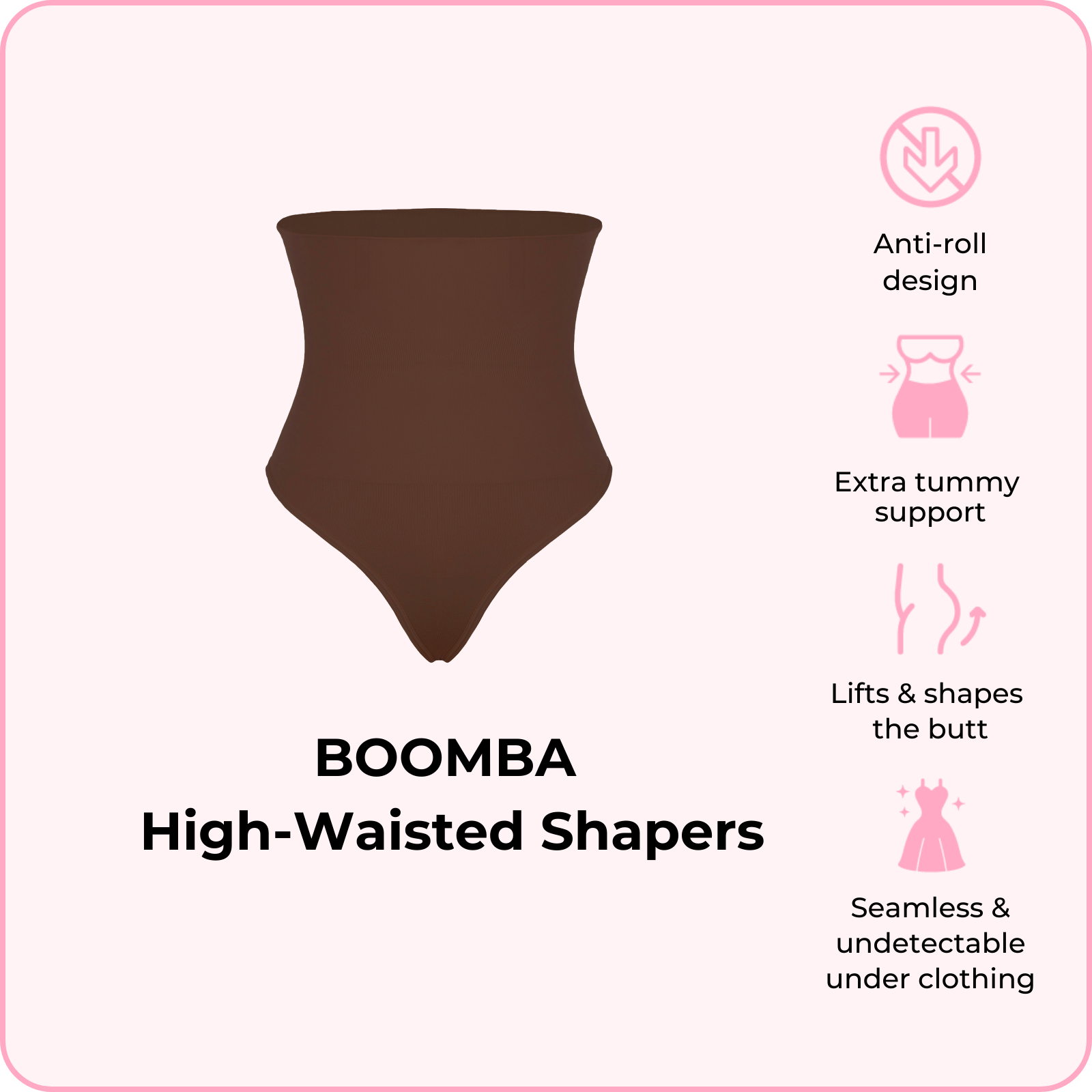 Experience a sleek, sculpted silhouette with BOOMBA's High-Waisted Shapers. Crafted to contour your waist and enhance your figure, these breathable thong shapers offer targeted support while remaining undetectable under your clothing. Featuring BOOMBA’s no-roll waistband, this shaper stays securely in place for all-day comfort and a flawless silhouette.