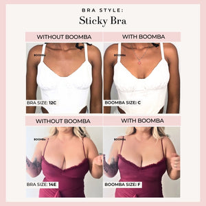How to Remove: To remove your sticky bra, unclasp and gently peel off one cup at a time, starting from the top outer edge. Reapply protective films onto the sticky bra and store back into the BOOMBA gift box, away from direct sunlight.