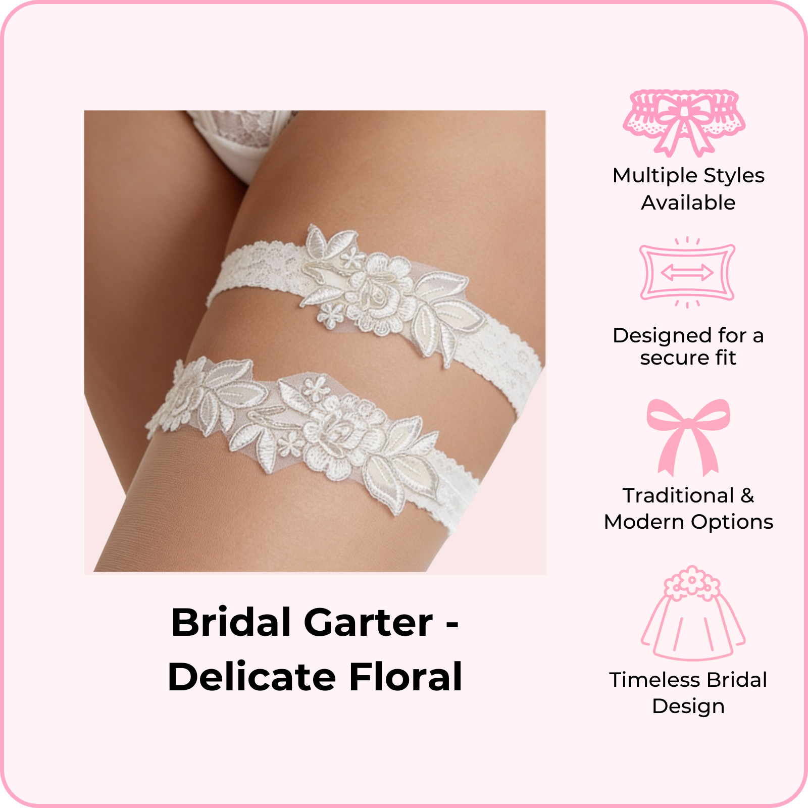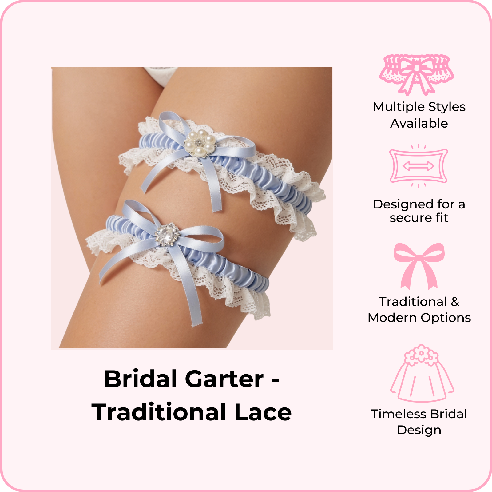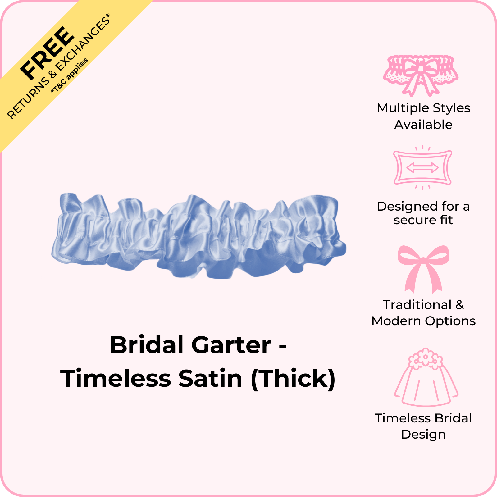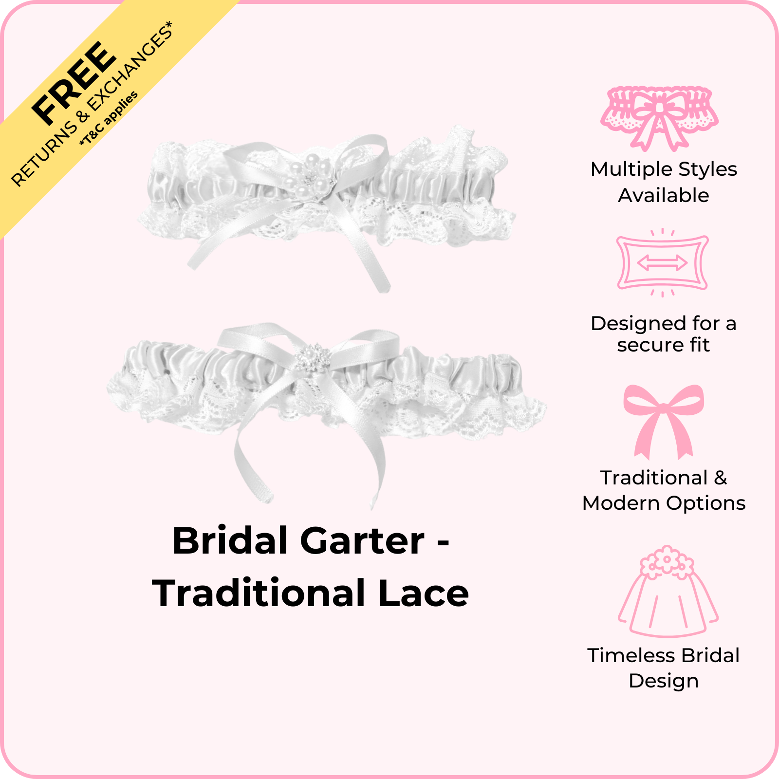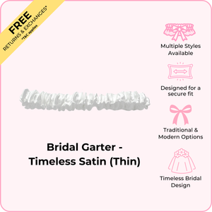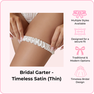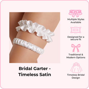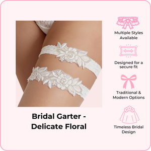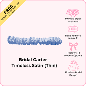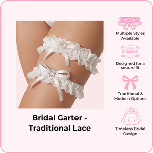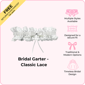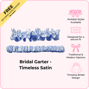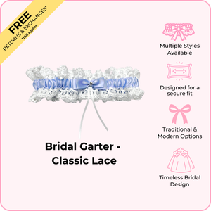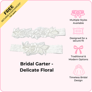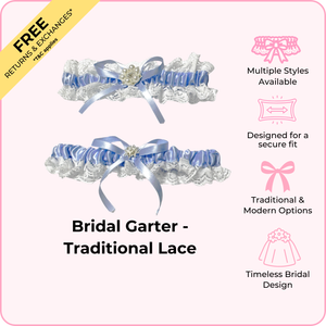 Available in a variety of styles from traditional lace to modern designs, each garter is crafted with soft, delicate fabrics that stay in place securely throughout your big day. Whether you're looking for "something blue" or timeless ivory elegance, we have a style that matches your vision.