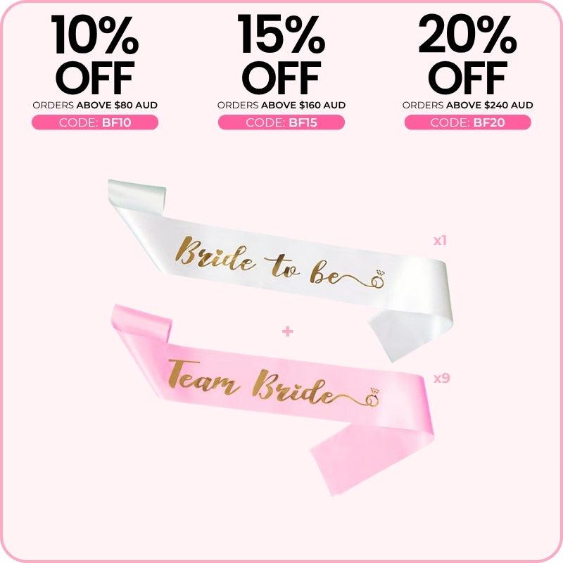 These stunning bridal sashes are just what you need for your girl's night out! Celebrate your engagement in style! You and your bridal party are sure to stand out in the crowd with these fun sashes!