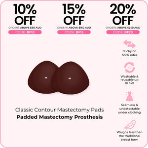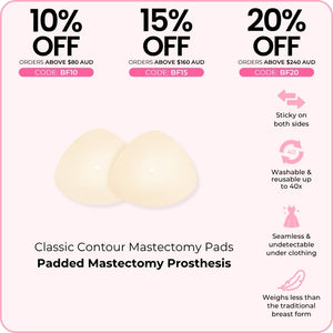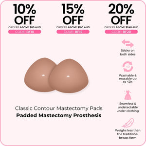 Sticky on Both Sides: Our mastectomy pads are sticky on both sides, sticking to clothing and to skin, ensuring it stays put for all day wear.