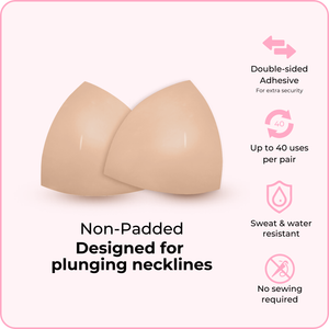 BOOMBA inserts require no sewing to stay in place! Just stick to your skin and to your top! They are easily interchangeable between different tops and dresses.