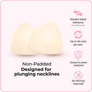 Unlike traditional inserts, BOOMBA's inserts are sticky on both sides, which means it sticks to your clothing and to your skin for extra security. Preventing nipple slips and easily staying hidden under clothing.