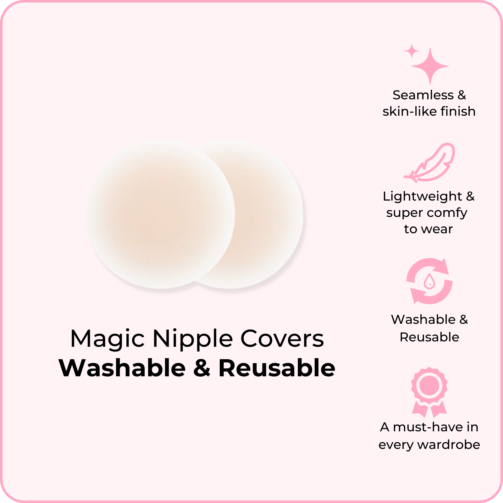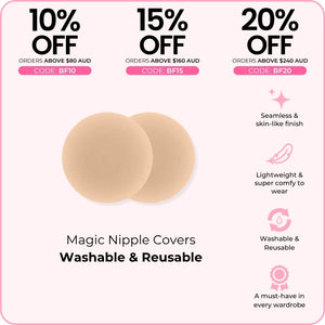 These Magic Nipple Covers are essential in every wardrobe. Seamless, lightweight, with a skin-like finish, these Magic Nipple covers are sure to blend effortlessly into your skin, staying undetectable under your top.