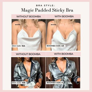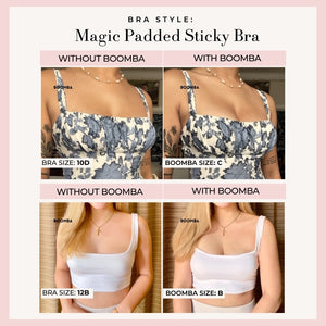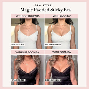 BOOMBA’s Magic Padded Sticky Bra is uniquely designed to add cup sizes discreetly.