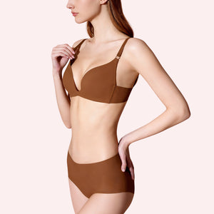 Invisible Lift: Lightly padded, designed to lift and shape without adding size in deep plunge tops and triangle bikinis.