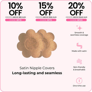 BOOMBA's Satin Nipple Covers lay seamlessly against your skin. Long-lasting and gentle, these nipple covers are a staple in every girl's wardrobe.