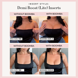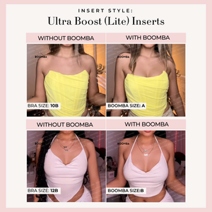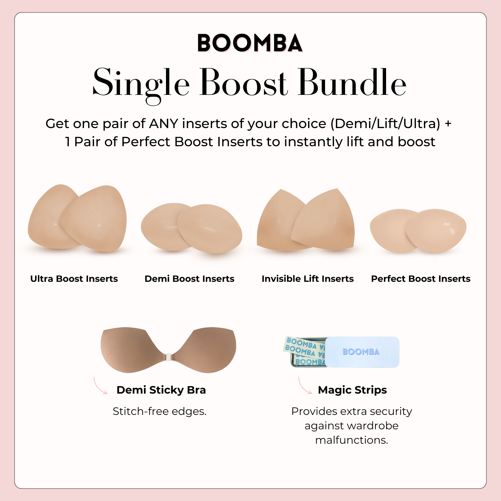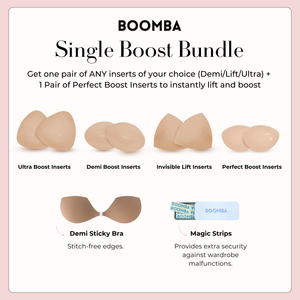 Looking for a natural-looking boost? Our Single Boost Bundle is made for you! Featuring the thinner versions of our best-selling Ultra Boost (Lite) and Demi Boost (Lite) Inserts. These Lite versions still deliver a noticeable lift and boost, just without the extra padding. Instantly add up to one cup size for a natural, everyday enhancement. Perfect for when you want a boost that’s low key but still high impact.