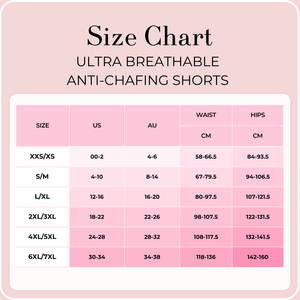 Ultra Breathable Anti-Chafing Shorts Size Guide